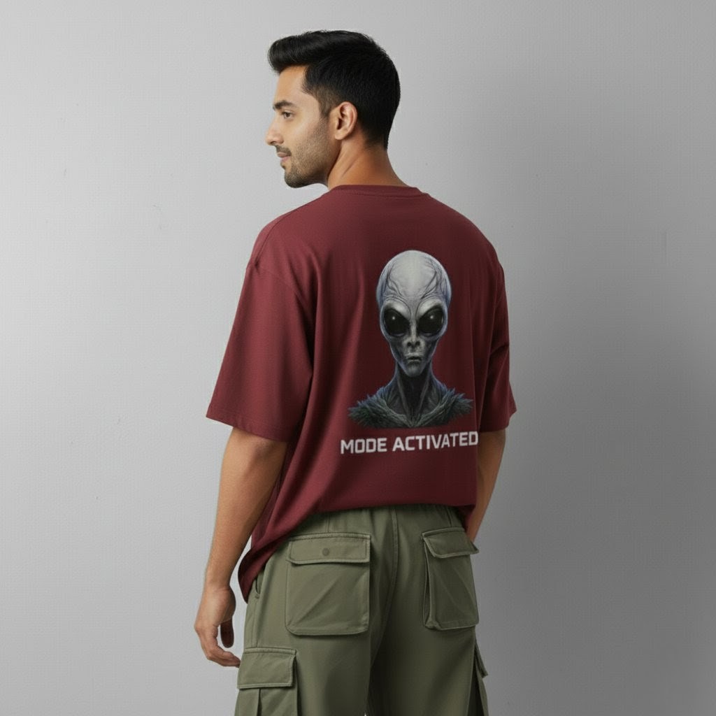 Alien Mode – Signature Edition (Maroon)VIZRAZ Oversized Tee – Alien Mode (Maroon) – Signature Edition